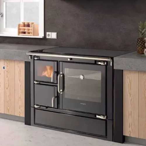 O Fogão a Lenha Eclecsys 100 CC SE da Hergóm combina a tradição da cozinha a lenha com a eficiência do aquecimento doméstico. Fabricado em ferro fundido de alta qualidade e com acabamento esmaltado, é ideal para cozinhar e aquecer a casa com máximo rendimento energético e durabilidade.