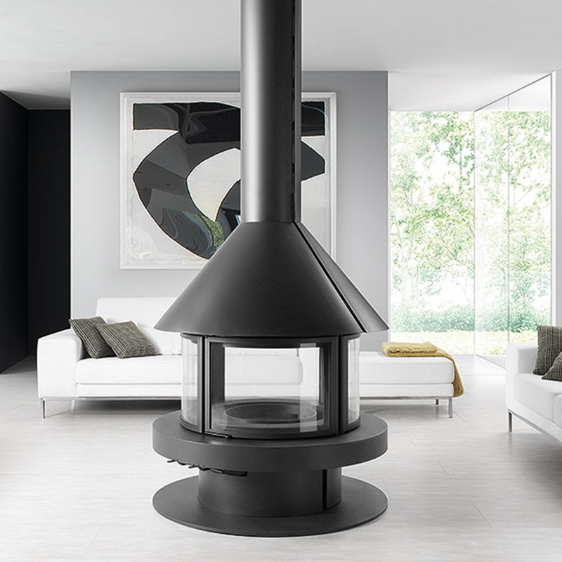 - Salamandra a lenha com campânula dupla ventilada para ar quente.