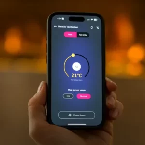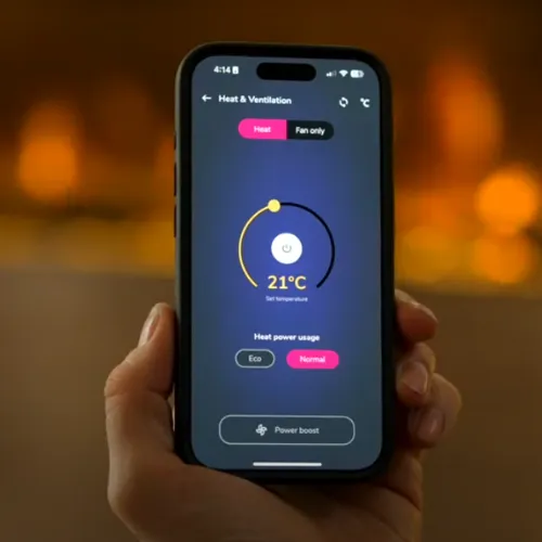 Todas as funções da lareira Ignite Bold podem ser controladas através do seu smartphone, utilizando a aplicação Dimplex Flame Connect. Desde a potência de aquecimento às cores da chama e do leito de combustível, passando pelo brilho e pela velocidade da chama, tudo pode ser ajustado com um simples toque. O controlo remoto Bluetooth da lareira também permite gerir todas as funcionalidades, proporcionando uma experiência de chama encantadora e personalizada. |
