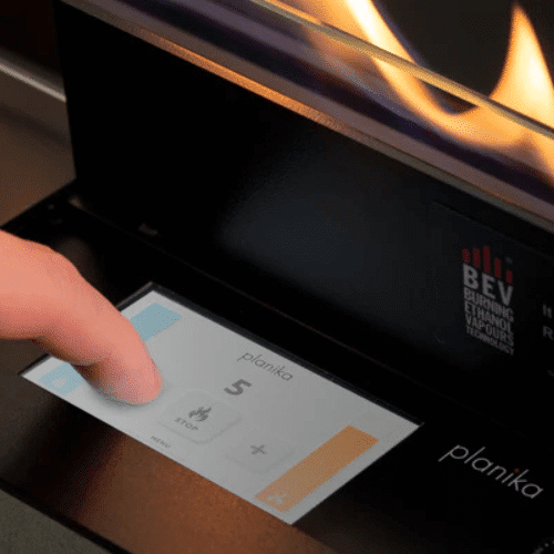 A Lareira Etanol FLA4 2490 – Planika é a primeira “lareira inteligente” do mundo com a tecnologia patenteada BEV (Burning Ethanol Vapours) criada pelos engenheiros da Planika.