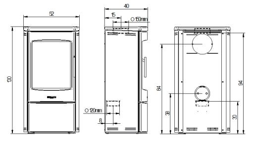 - Saída de fumo: 150 mm;