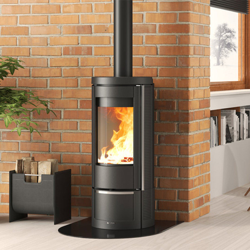 - Salamandra a lenha Marlena em ferro fundido totalmente esmaltado, da Nórdica & Extraflame.