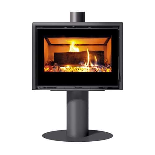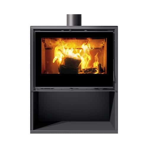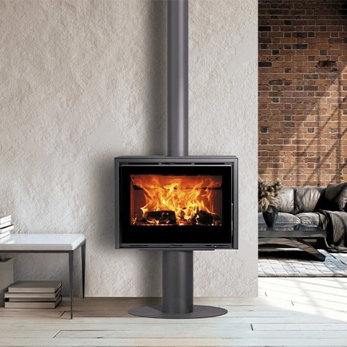 A Salamandra a Lenha RI-80 – CARBEL, tem um design elegante e requintado e é ventilada. Disponível em 3 versões: Suspensa, com Lenheiro ou com pé.