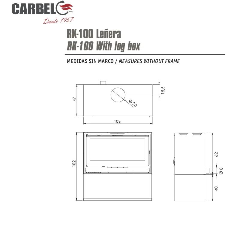 - Salamandra a Lenha RK-100, desenhada como recuperador com um revestimento metálico, permitirá desfrutar do calor de convecção de uma salamandra e da funcionalidade dos seus ventiladores integrados.