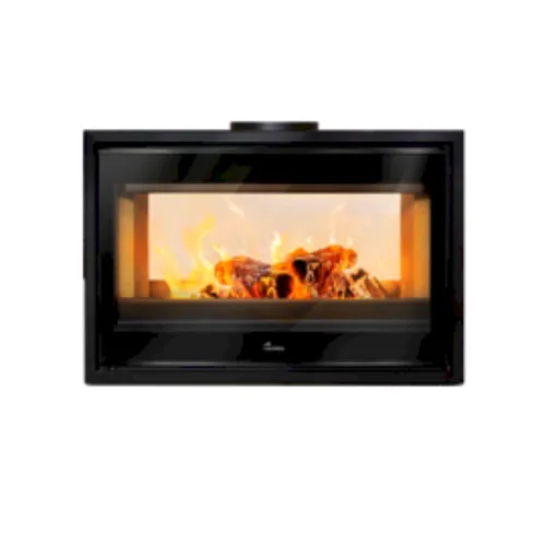 A Salamandra Verona 800 da Lacunza é um fogão a lenha panorâmico, com vidro duplo, concebido para oferecer linhas limpas e excelente transparência visual. Ideal para separar ambientes ou servir como elemento central de estética numa divisão, proporciona uma experiência de fogo envolvente.