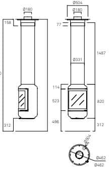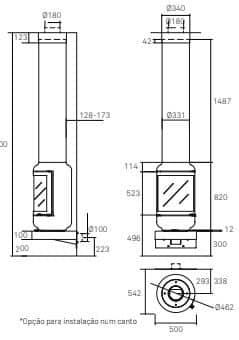 - Diâmetro da saída de fumos: 180 mm (superior);