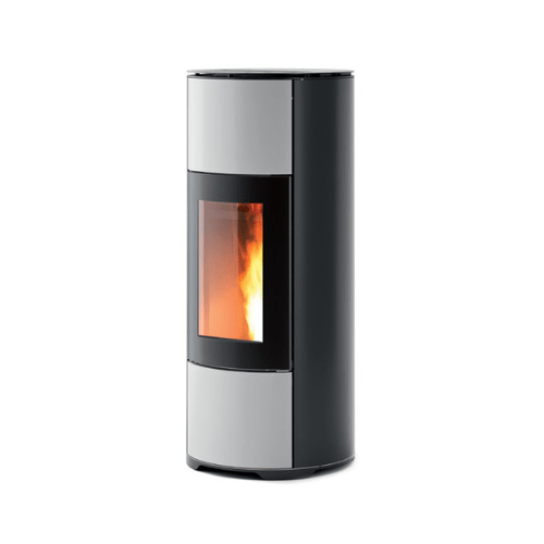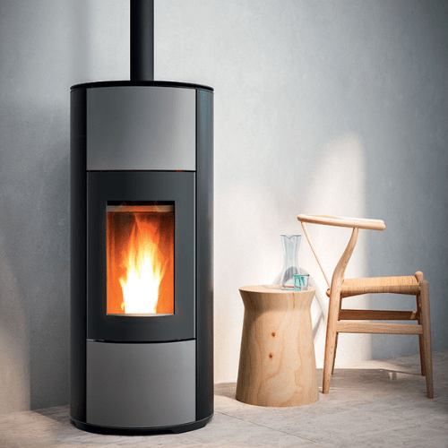 Salamandra a Pellets Halo – MCZ, fabricadas em aço preto com painel frontal colorido (Alumínio, bem como, Prata, Escuro, Bordéus). Nova caixa de fogo, mais profunda e mais alta, que segue o movimento natural da chama. Dessa forma, é particularmente adequada para instalação em cantos.