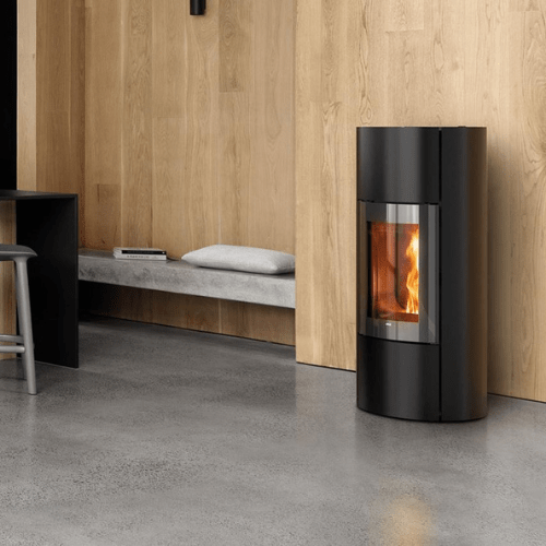 A Salamandra a Pellets Mood Core – MCZ é redonda, com condutas, com tampo em alumínio pintado de preto e laterais em aço bronze ou preto. Dessa forma, o novo design realça e acentua o seu carácter minimalista. Está equipado com dois ventiladores reguláveis de forma independente (ventilação ambiente e conduta traseira). Gestão inteligente da combustão através da tecnologia Maestro+.